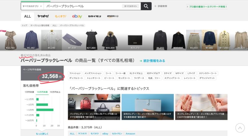 勿論オークファンは過去のデータを見るだけのツールでは無いので、